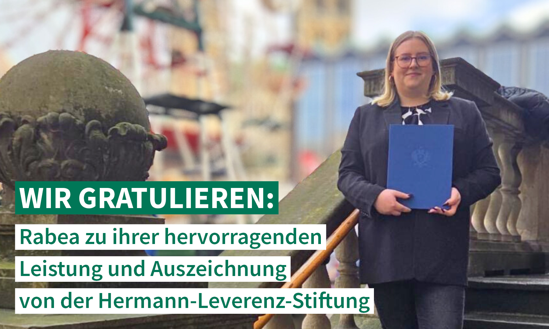 Für diese herausragende Leistung wurde sie von der Hermann-Leverenz-Stiftung als eine der besten Absolventinnen aller kaufmännischen Berufe in Bremen und Bremerhaven ausgezeichnet.